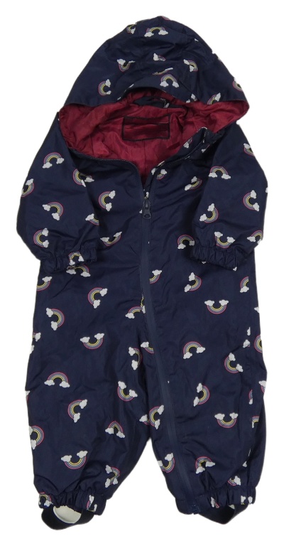 Tmavomodrá šusťáková podšitá kombinéza s duhami a kapucí Impidimpi