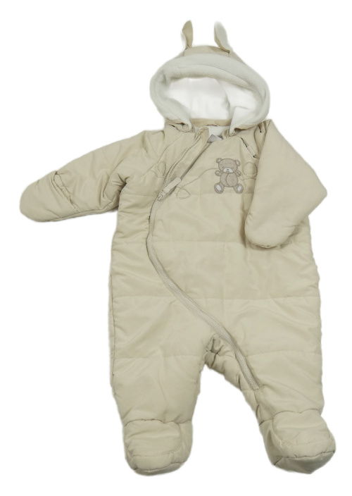 Světlebéžová prošívaná šusťáková zimní kombinéza s medvídkem a odepínací kapucí H&M