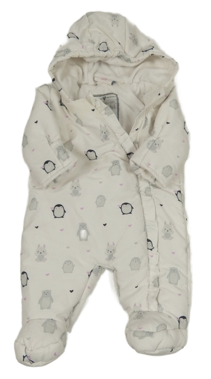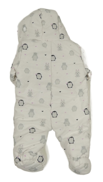 Bílá šusťáková zimní kombinéza se zvířátky a kapucí Topomini