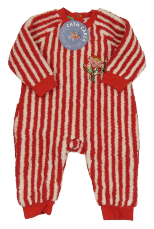 Nové - Červeno-bílá pruhovaná huňatá kombinéza s kytičkou Cath Kids