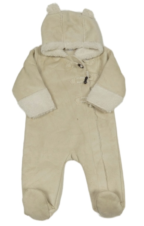 Béžová semišová zateplená kombinéza s kapucí
