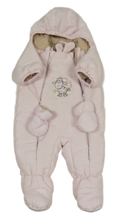 Světlerůžová šusťáková zimní kombinéza s ovcí a kapucí + rukavice Ergee