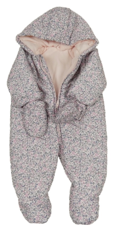 • Světlerůžová květinová šusťáková zimní kombinéza s kapucí+ rukavice Mothercare