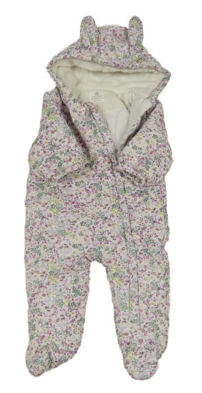 Bílá manšestrová zimní kombinéza s kytičkami a kapucí s oušky Next