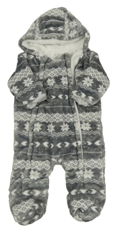 • Šedo-bílá vzorovaná plyšová zateplená kombinéza s vločkami a kapucí F&F