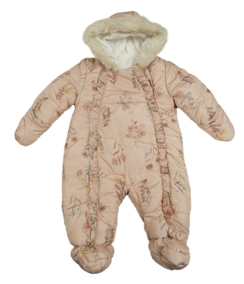 Světlerůžová květinová šusťáková zimní kombinéza s kapucí George