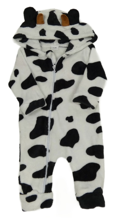 Bílo-černá vzorovaná chlupatá kombinéza s kapucí - kravička