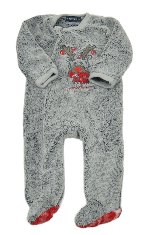 Šedo-bílá plyšová kombinéza se sobem in extenso