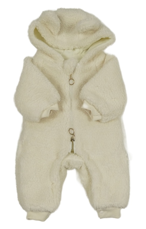 • Bílá huňatá zateplená kombinéza s kapucí s oušky