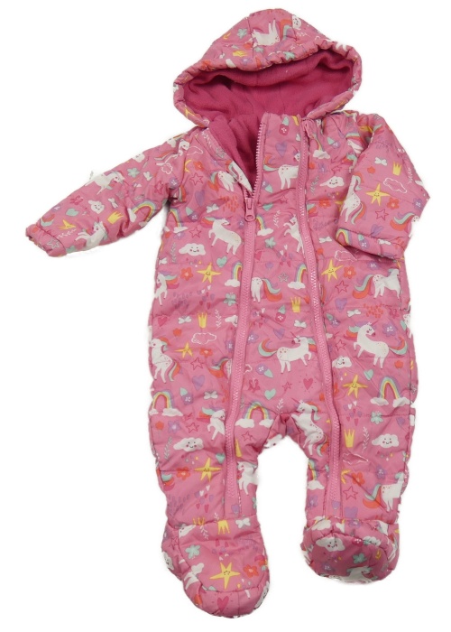 Růžová šusťáková zimní kombinéza s jednorožci a kapucí St. Bernard