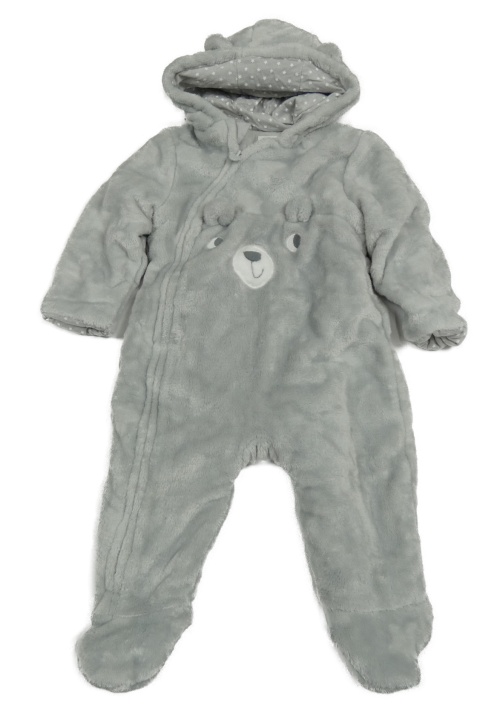 Šedá chlupatá zateplená kombinéza s medvídkem a kapucí C&A