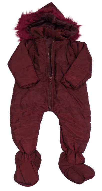 Červená šusťáková prošívaná zimní kombinéza s kapucí