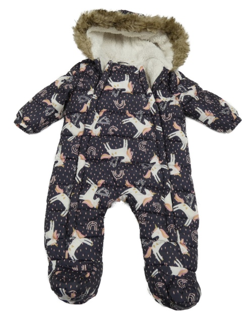 Šedá šusťáková prošívaná zimní kombinéza s jednorožci a kapucí F&F