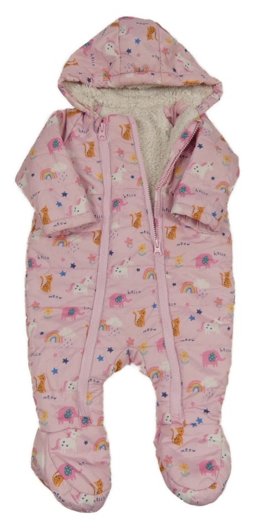 • Světlerůžová šusťáková zateplená kombinéza se zvířaty a kapucí St. Bernard