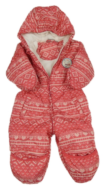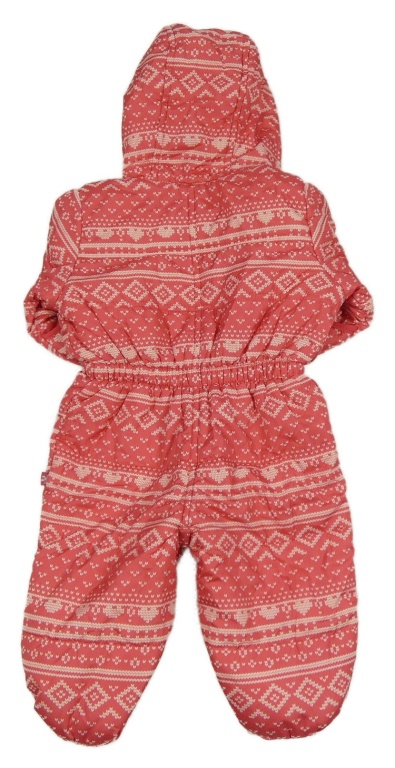 • Jahodová vzorovaná šusťáková zimní kombinéza s nášivkou a srdíčky a kapucí impidimpi