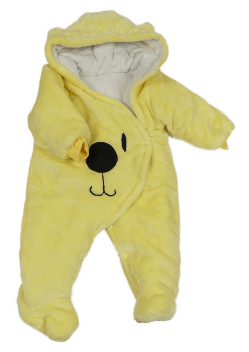 • Žlutá chlupatá zateplená kombinéza s čumákem a kapucí