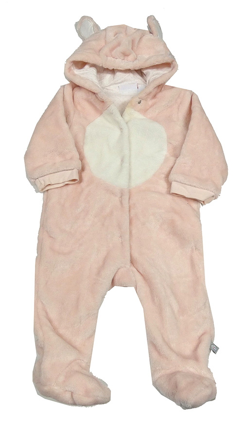 Růžovo-bílá chlupatá podšitá kombinéza s kapucí Liegelind