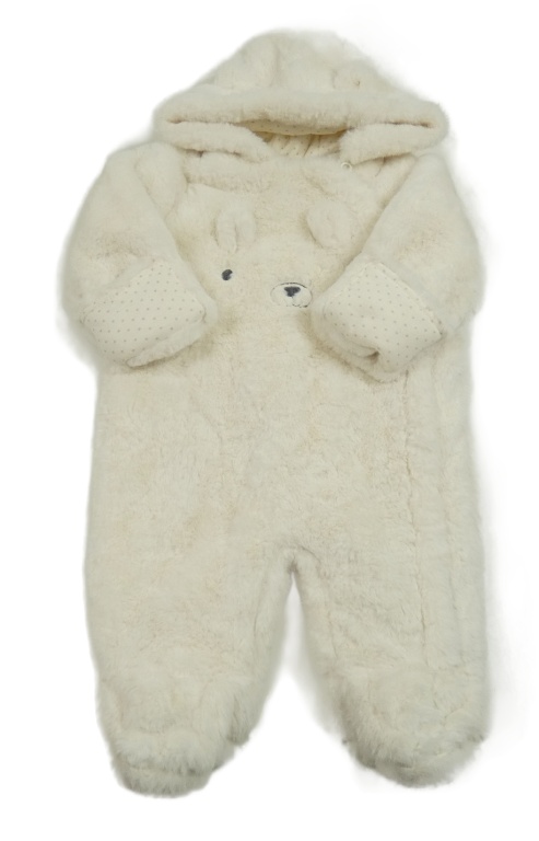 • Smetanová kožešinová zateplená kombinéza s medvídkem a kapucí s oušky little nutmeg