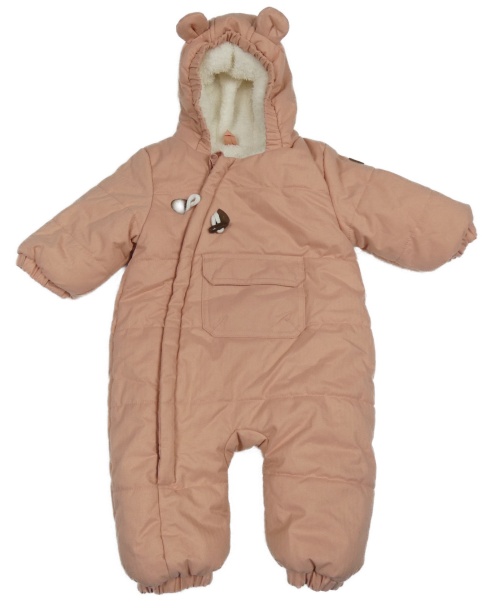 Růžová šusťáková zimní kombinéza s kapsou a kapucí