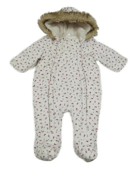 Bílá vzorovaná šusťáková zimní květovaná kombinéza s kapucí F&F