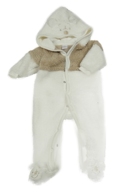 Bílo-béžová huňatá kombinéza s Medvídkem Pú a kapucí Disney