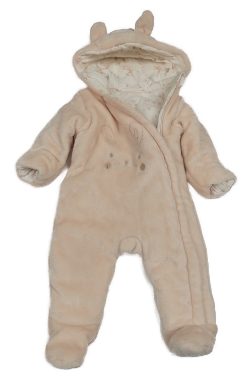 Světlerůžová chlupatá zateplená kombinéza se zajícem a kapucí Mothercare