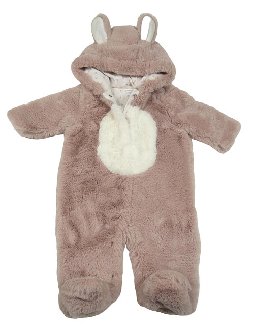 Starorůžovo-bílá kožešinová podšitá kombinéza s kapucí s oušky Next