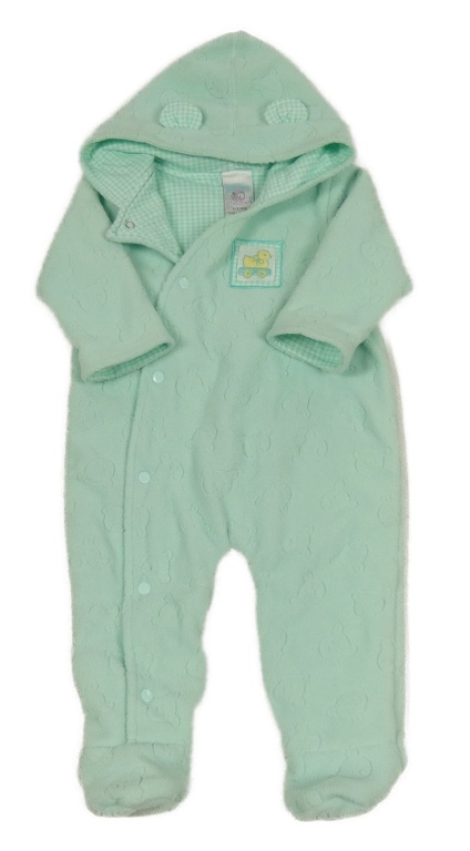 • Mátová fleecová podšitá kombinéza s medvídky a nášivkou a kapucí s oušky