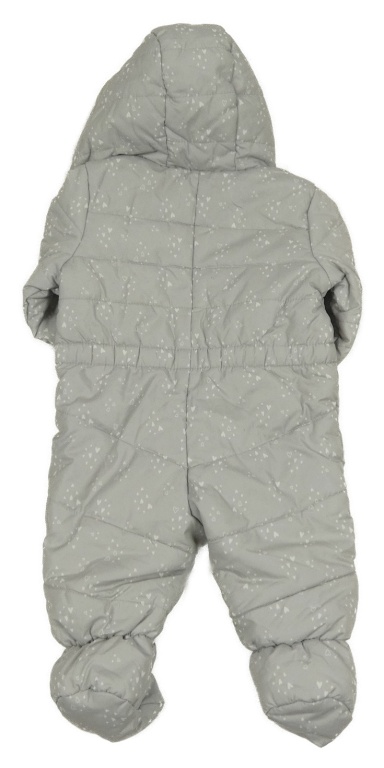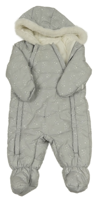 Světlešedá prošívaná šusťáková zimní kombinéza se srdíčky a kapucí s kožešinou C&A