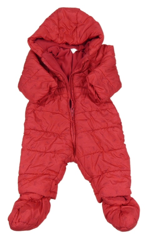• Fuchsiová puntíkatá šusťáková zimní kombinéza s mašlemi a kapucí + boty C&A