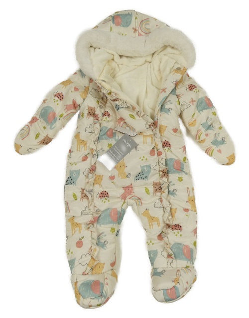 Nové - Krémová šusťáková zimní kombinéza se zvířaty a kapucí George