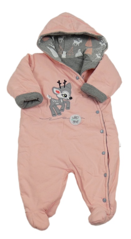 Světlerůžová bavlněná zateplená kombinéza se srnkou a kapucí Koala