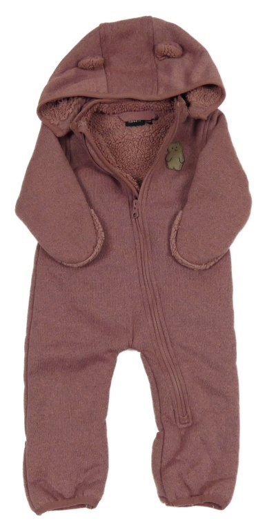 Růžová melírovaná pletená zateplená kombinéza s medvídkem a kapucí