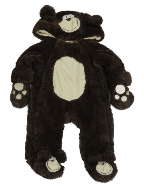 Kávová chlupatá zateplená kombinéza s kapucí - medvěd Rock a Bye Baby