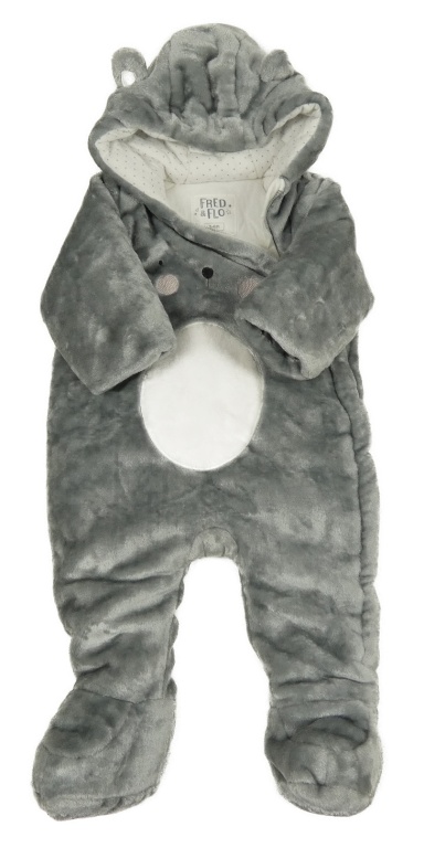 Šedá plyšová zateplená kombinéza s kapucí s oušky F&F