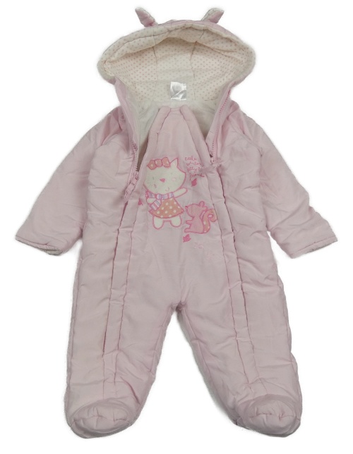 Světlerůžová šusťáková zimní kombinéza s kočičkou a kapucí