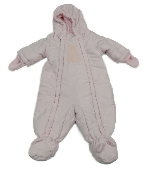 Světlerůžová šusťáková zimní kombinéza s kapucí + rukavice Benetton