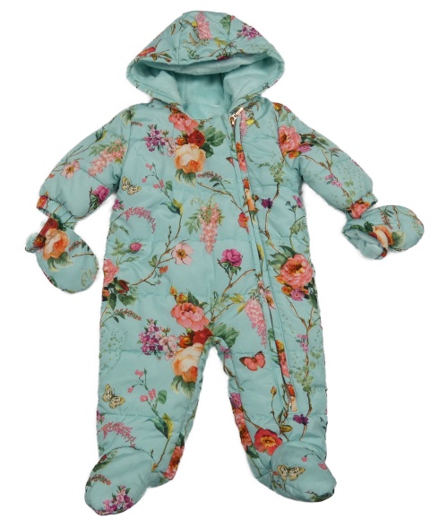 Světlemodro-květovaná šusťáková zimní kombinéza s kapucí - rukavice Next