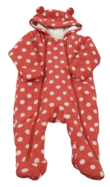 Jahodová puntíkatá fleecová zateplená kombinéza s kapucí M&S