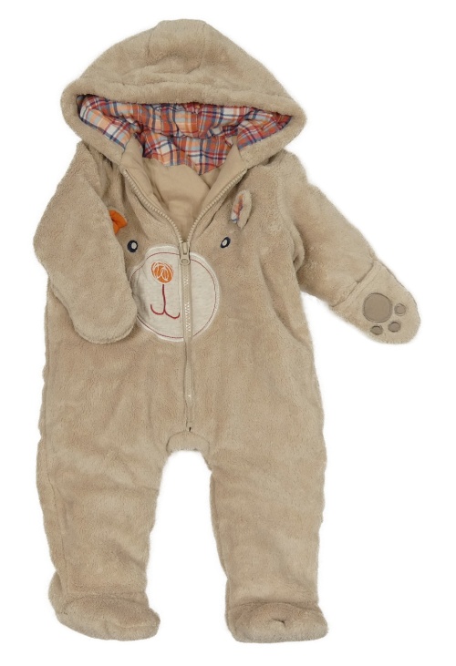 Béžová plyšová zateplená kombinéza s medvídkem a kapucí St. Bernard