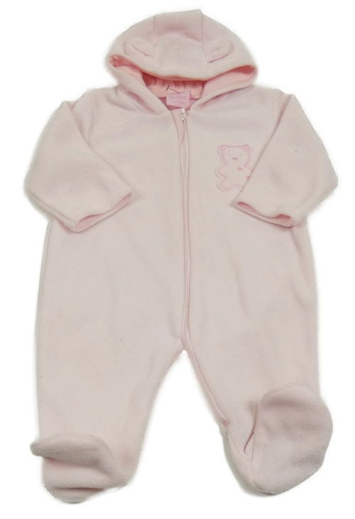 Světlerůžová fleecová kombinéza s medvídkem a kapucí