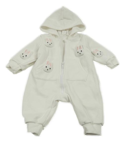 • Bílá žebrovaná kombinéza s králíky a kapucí Shein