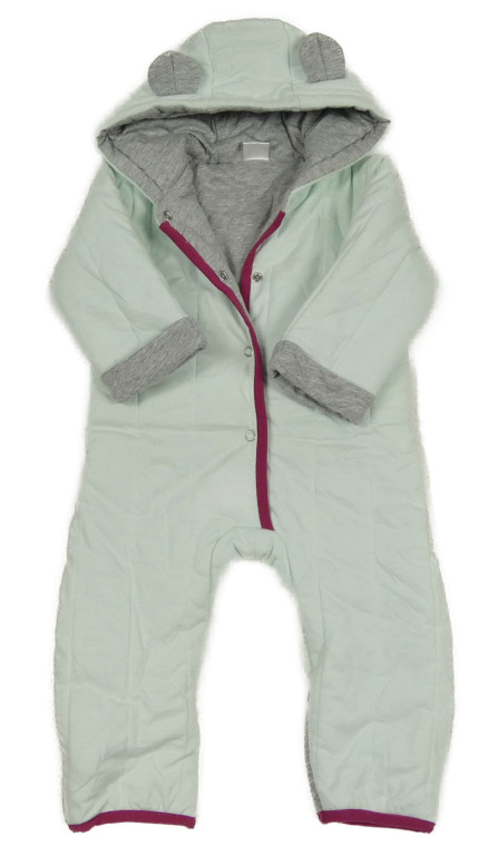 Mentolová prošívaná zateplená kombinéza s kapucí s oušky