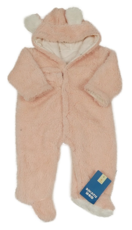 Nové - světlerůžová chlupatá podšitá kombinéza s kapucí s oušky