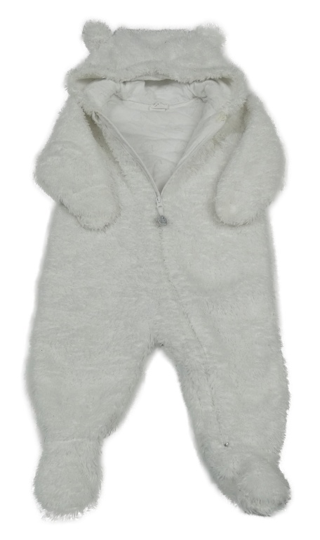 Bílá huňatá kombinéza s oušky