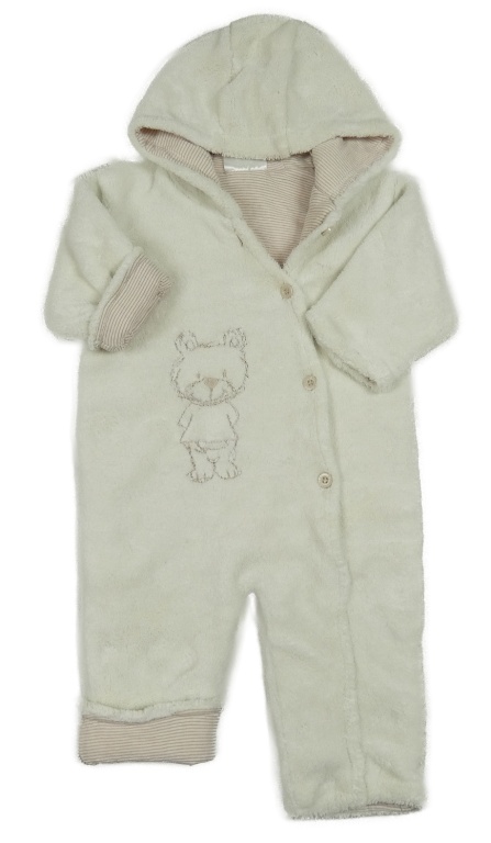 • Smetanová plyšová podšitá kombinéza s medvědem a kapucí