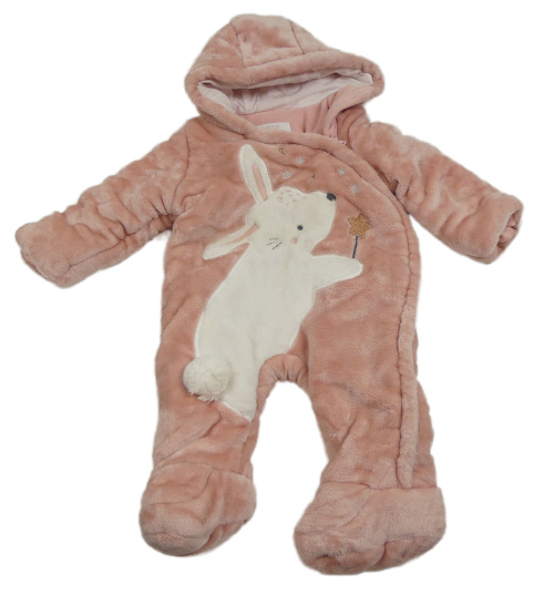 Růžová plyšová zateplená kombinéza s králíkem a kapucí F&F