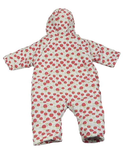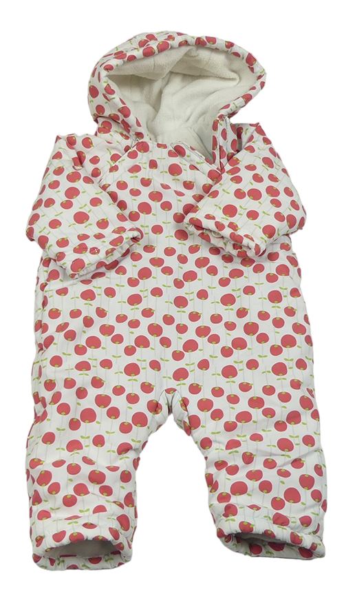 Bílá šusťáková zimní kombinéza s jablíčky a kapucí Mothercare