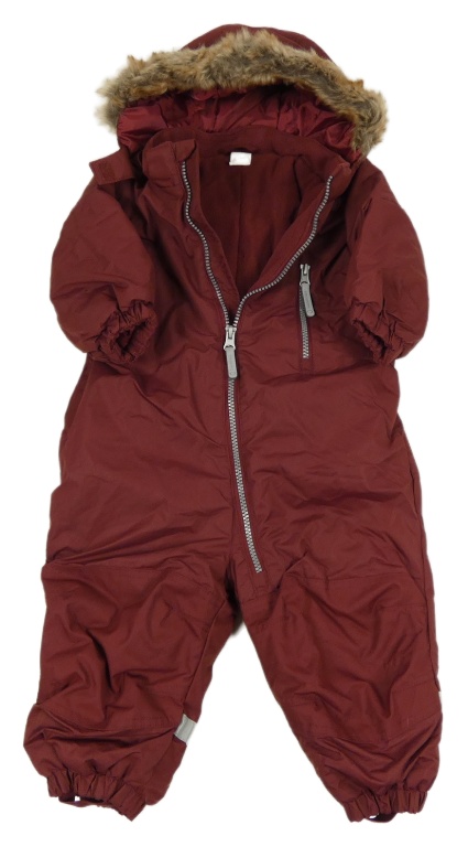 Vínová šusťáková zimní kombinéza s kapucí s kožešinou H&M
