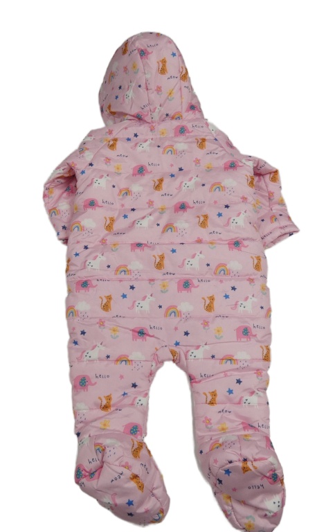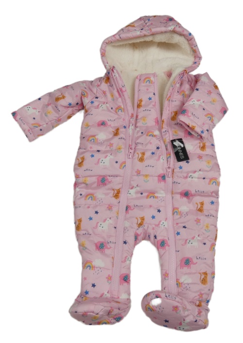 • Nová - světlerůžová prošívaná šusťáková zimní kombinéza se zvířátky a kytičkami a duhami a kapucí St. Bernard